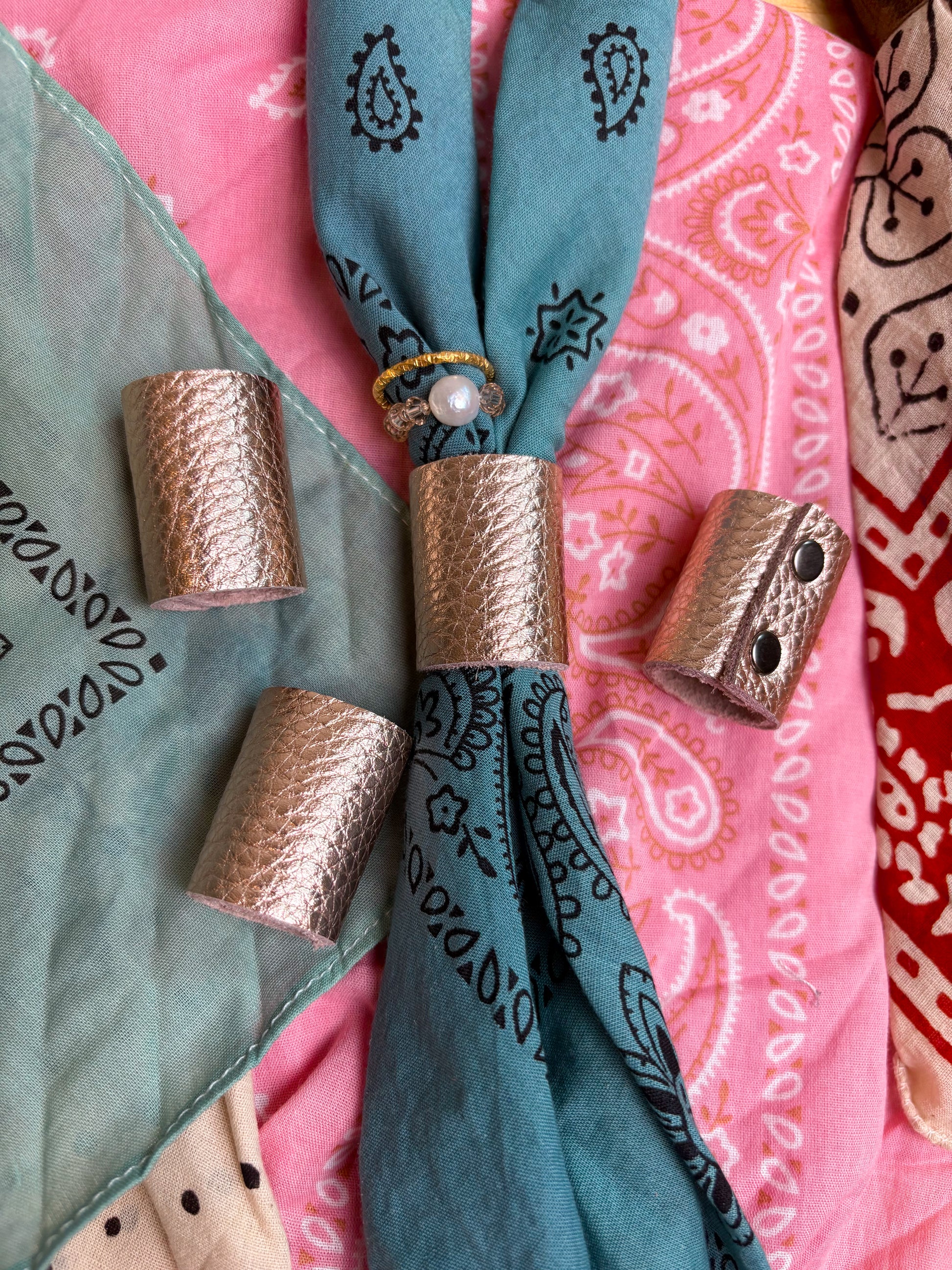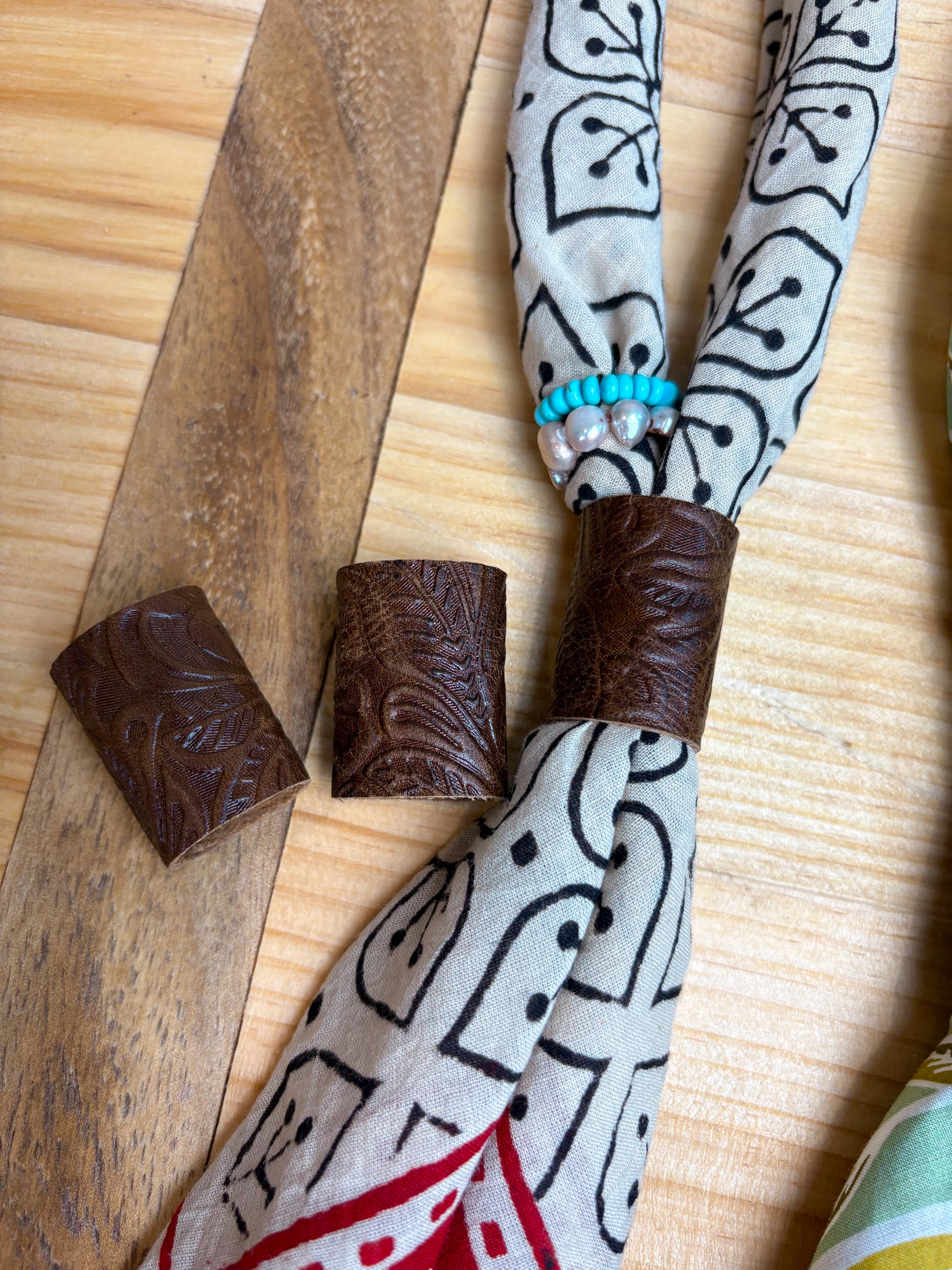 Part of our online bandana bar! Genuine leather slides.