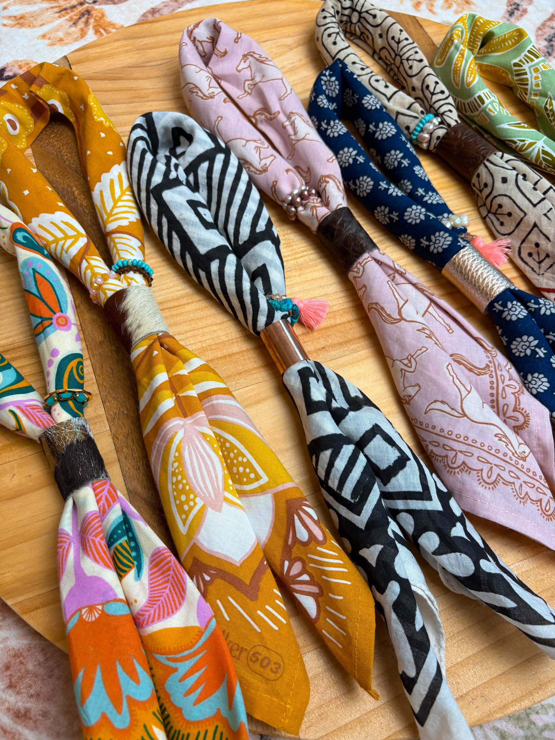 The first step in our build a bandana bar! Accessorize your own with our slide & charm options.