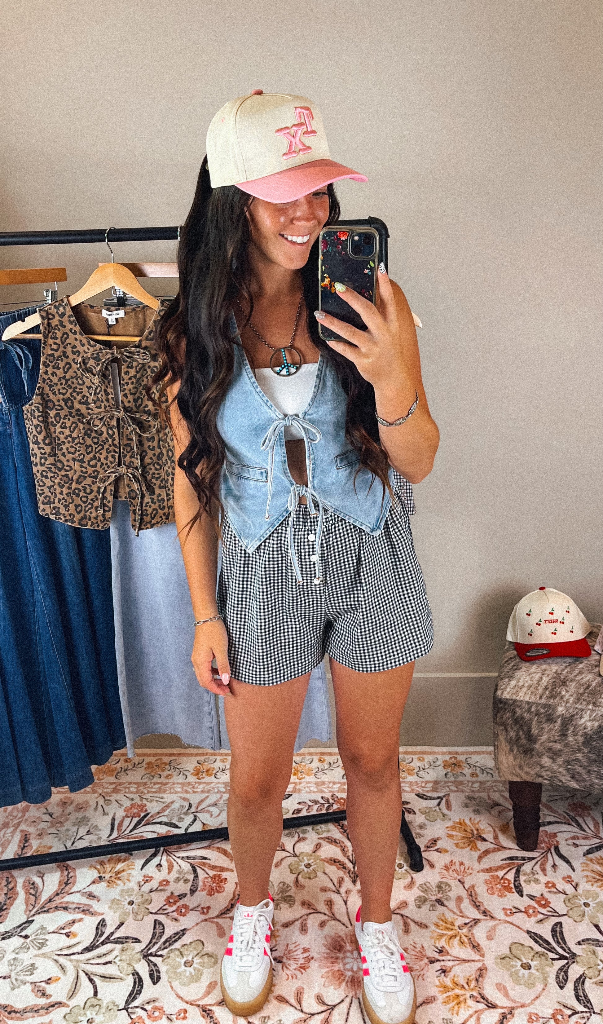 Jaleigh is 5'4 with a 25" waist wearing a size small.