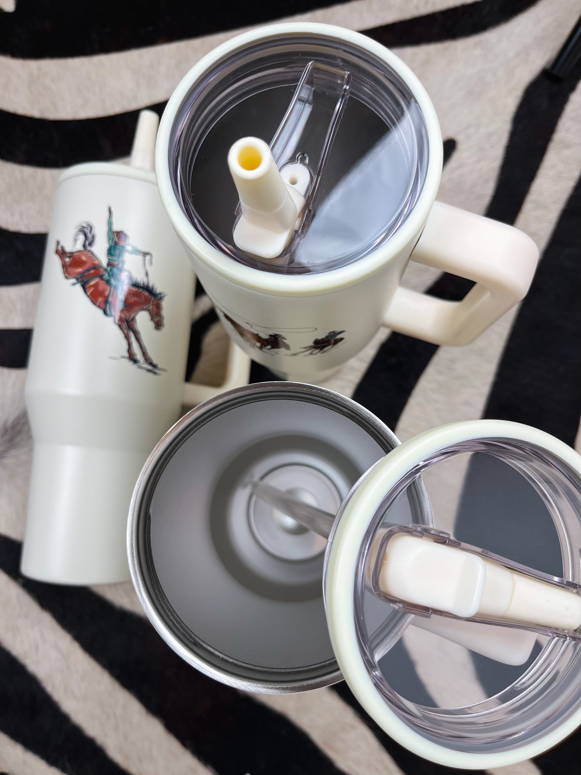 40 oz stainless steel tumblers. Flip up straw & leakproof!!