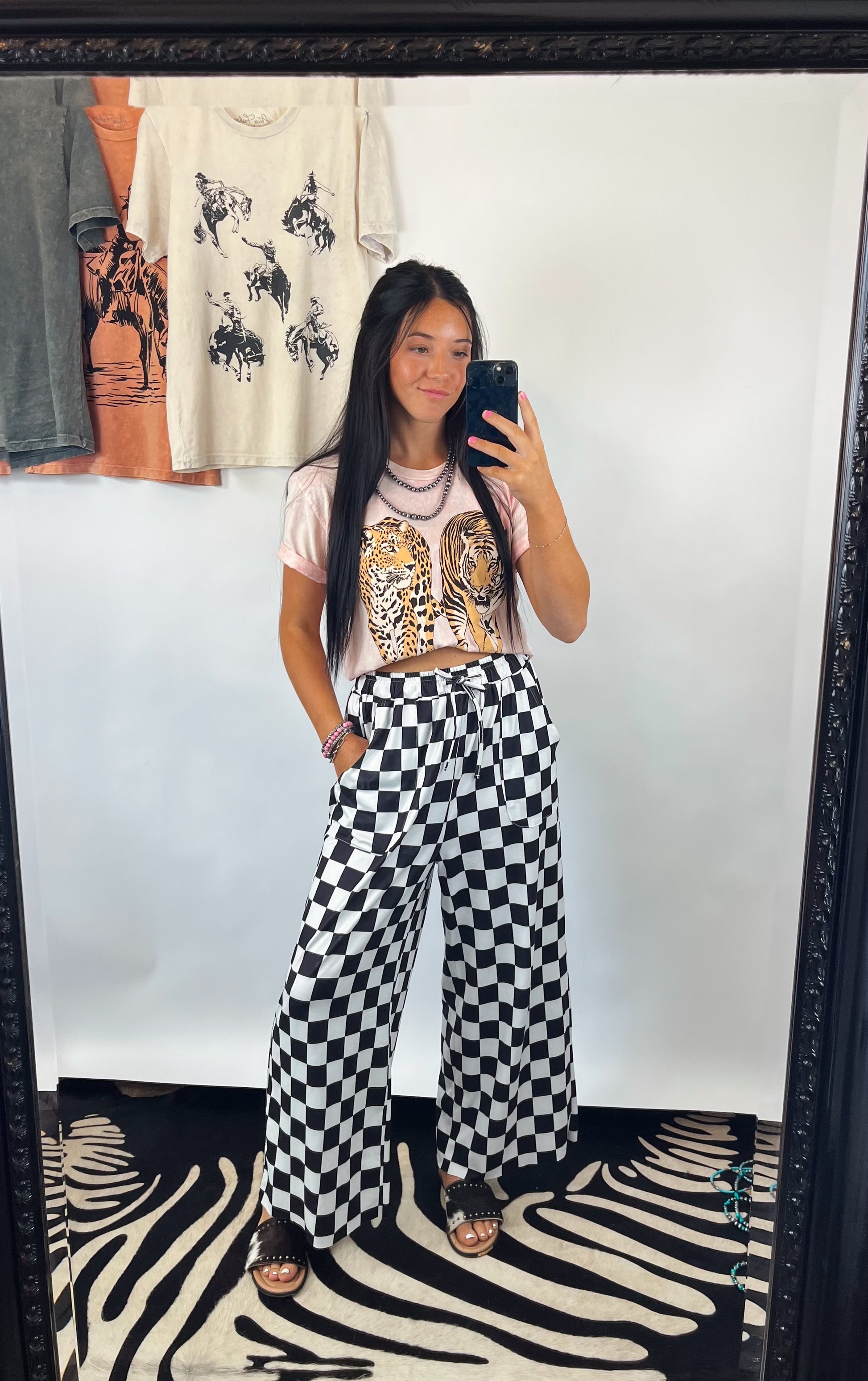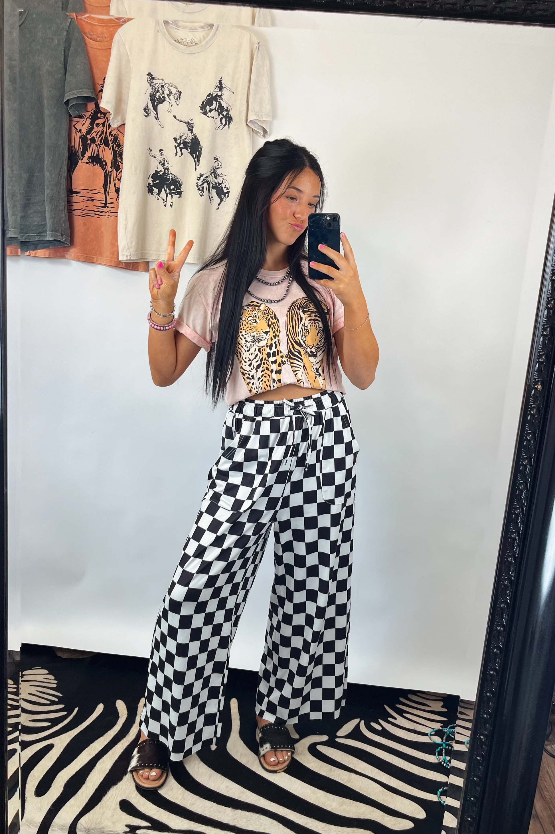 Soft light pink mineral wash tee. Leopard & tiger besties graphic. Superrr comfy and lightweight feel.