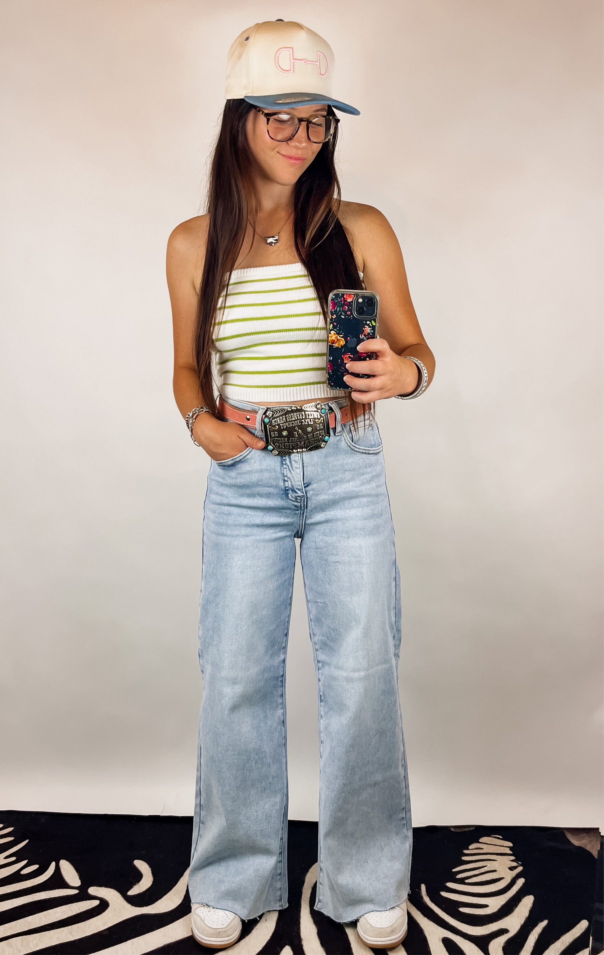 Jaleigh is 5’4 with a 25" waist wearing a size small.