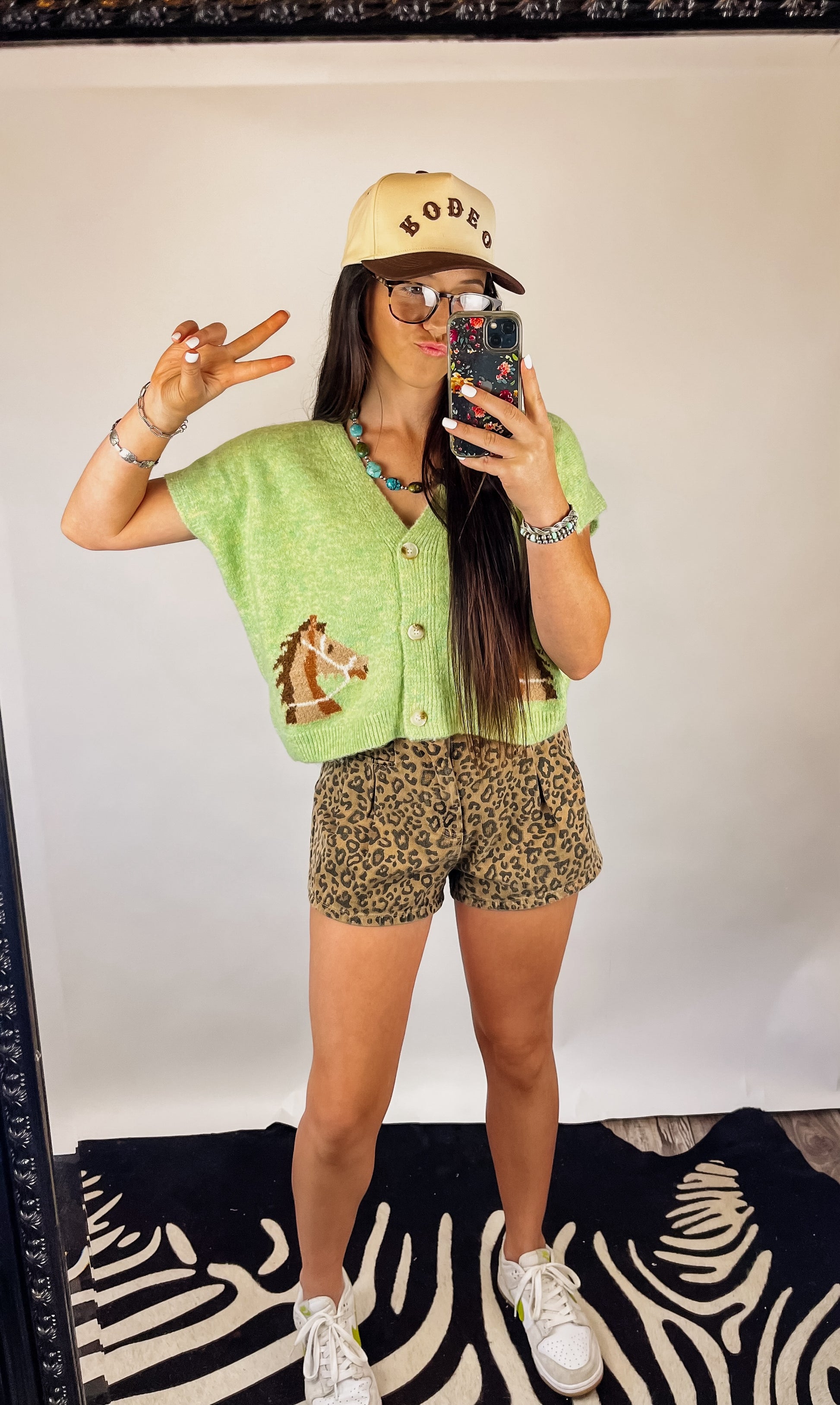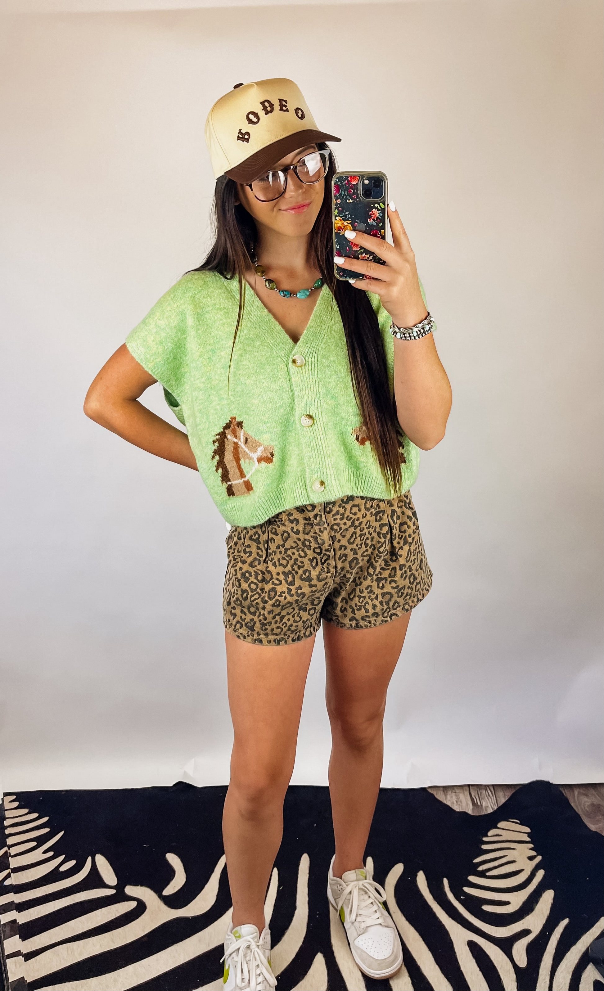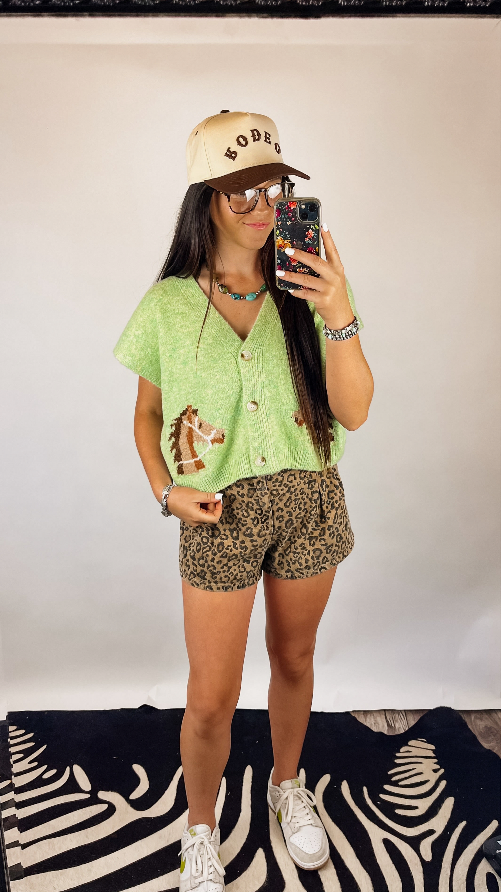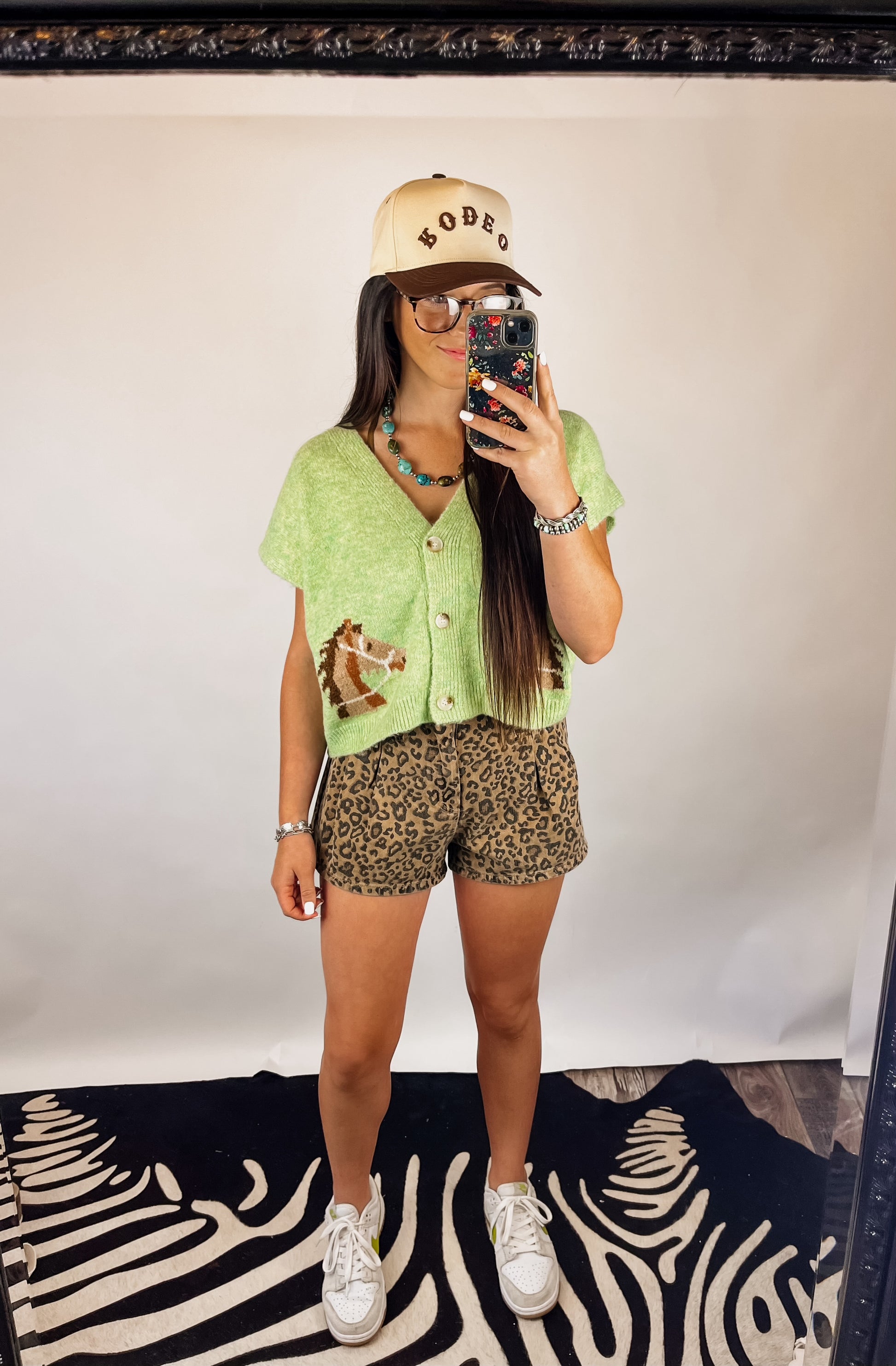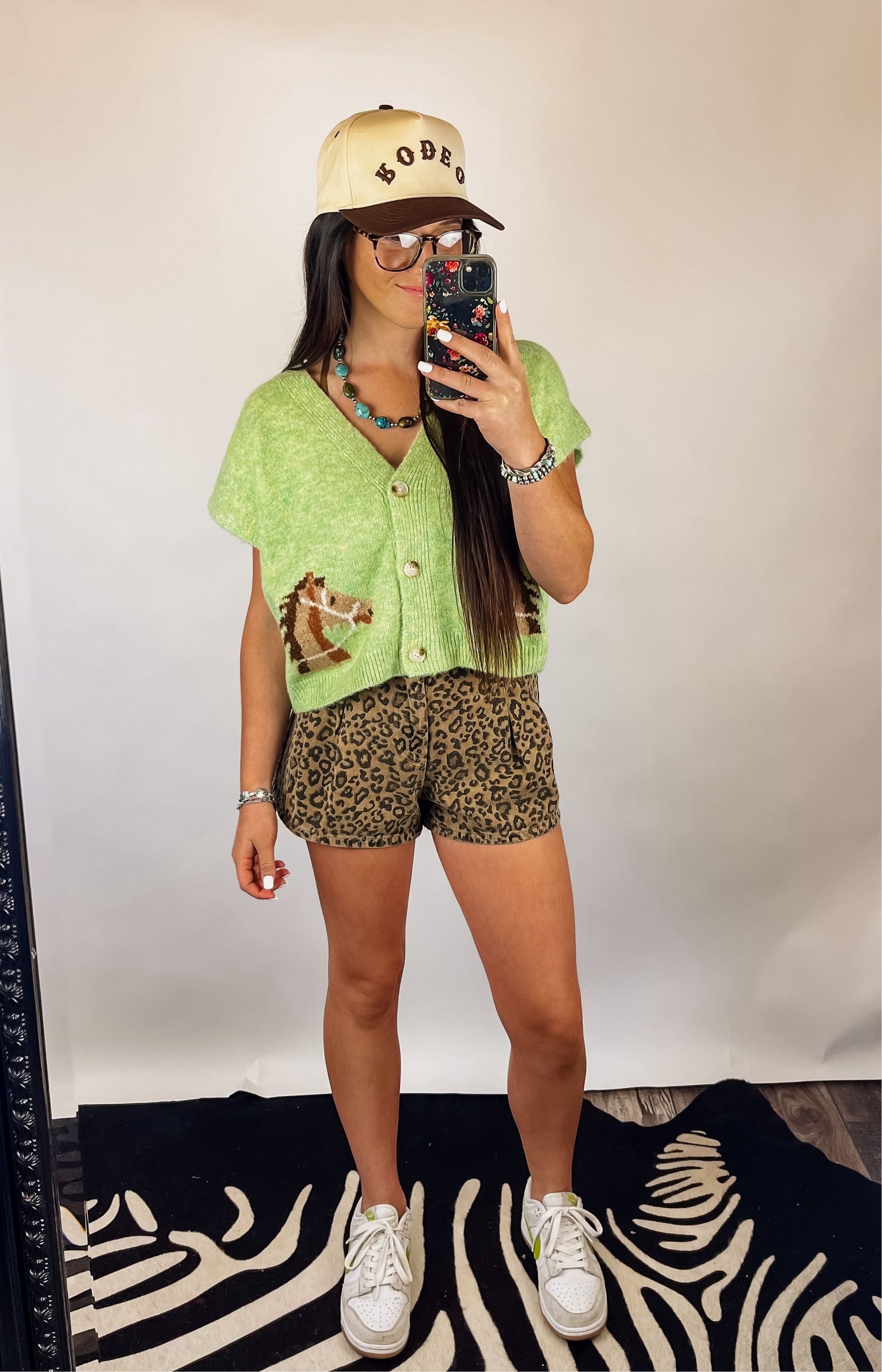 Super soft & comfortable knit cardigan top. Button front. Really cute light green color & horse detail. Relaxed fit.