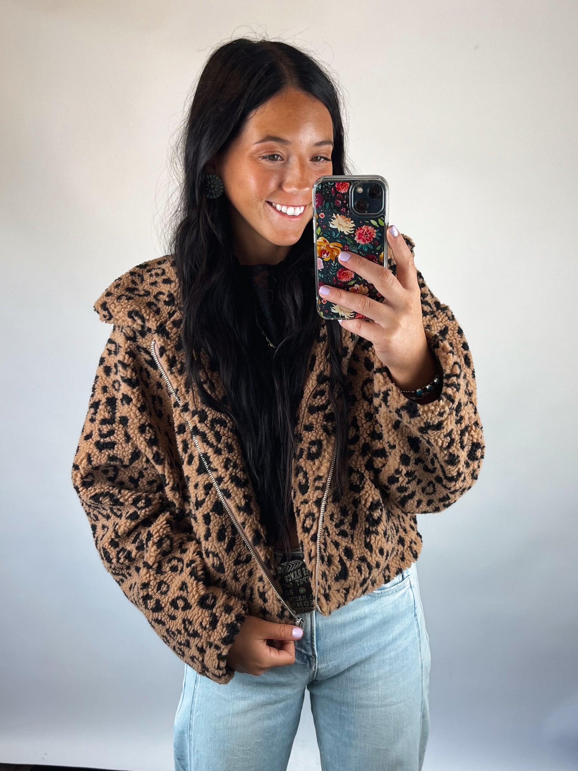Leopard is the new blackšš Fleece material zip up jacket thatāll keep you warm & cozy. Fleece on the outside, lined on the inside.Ā