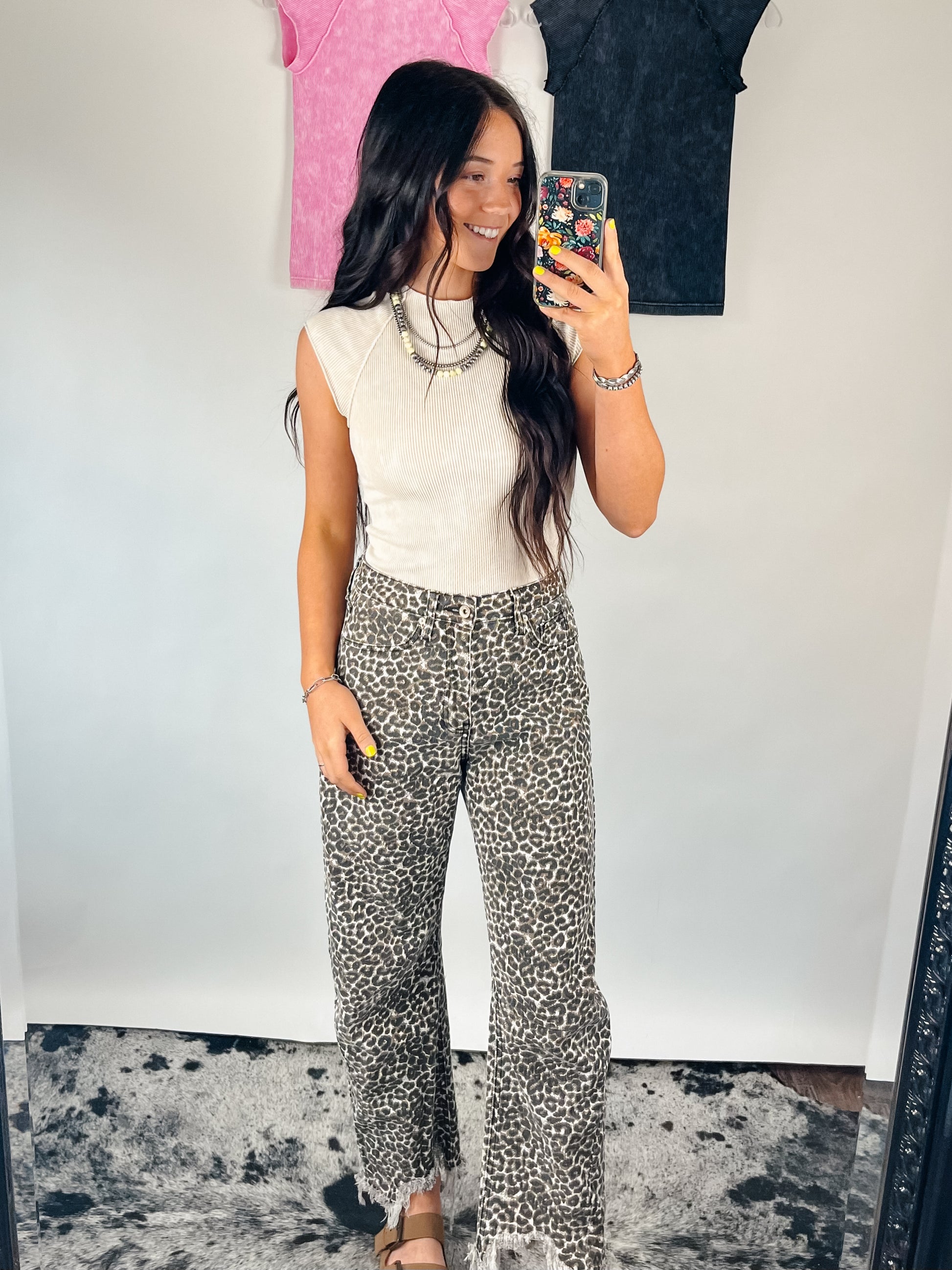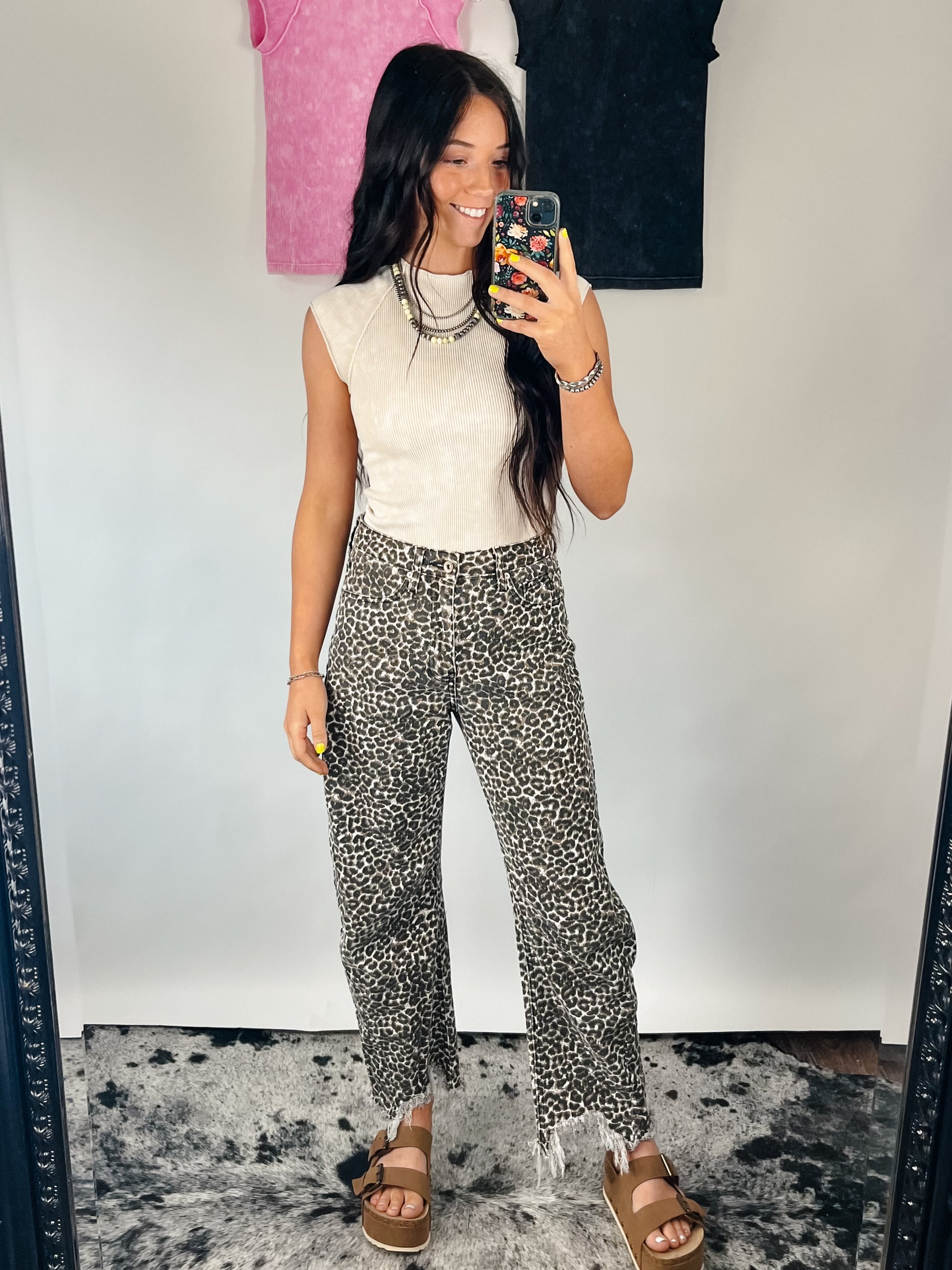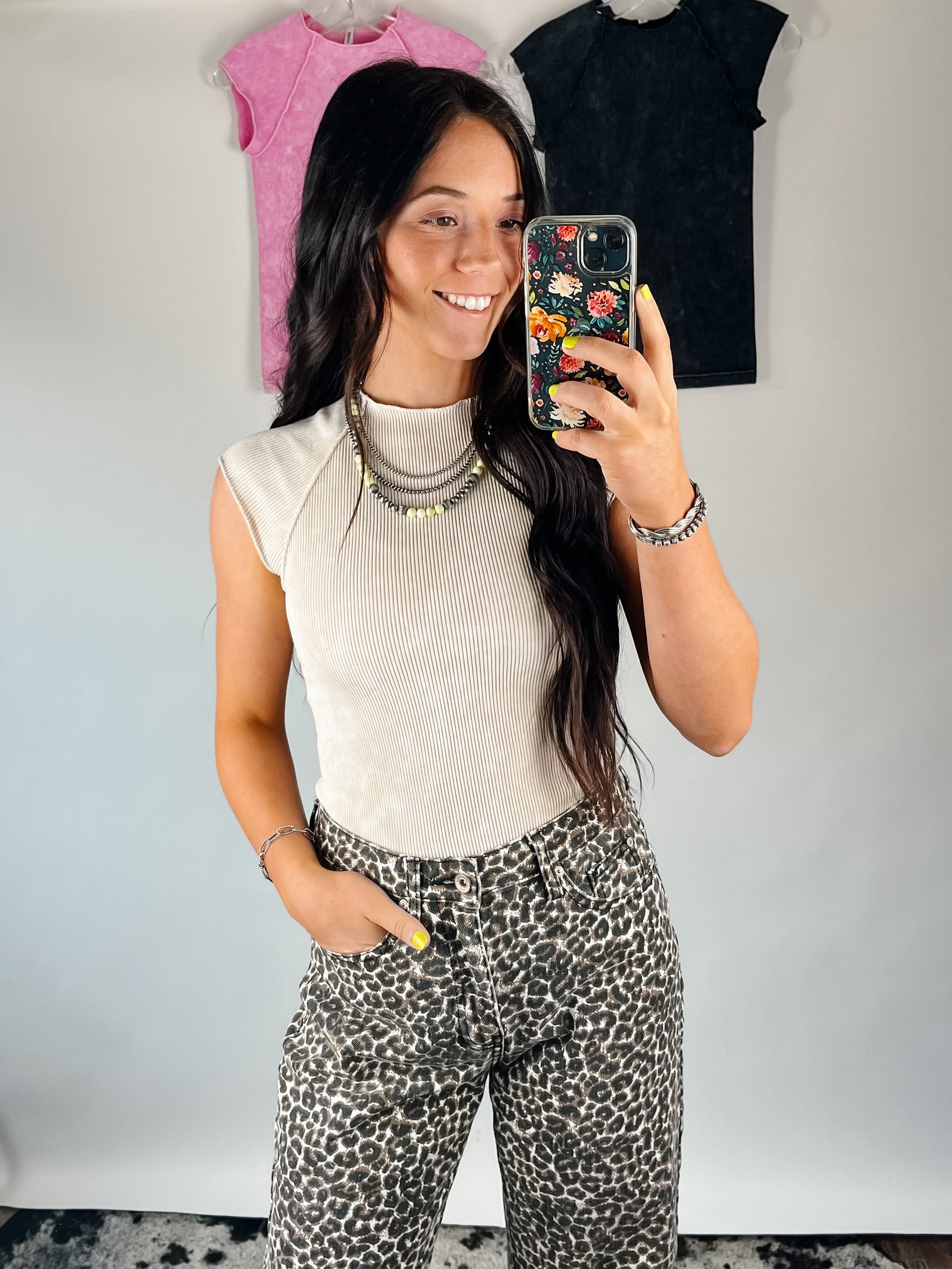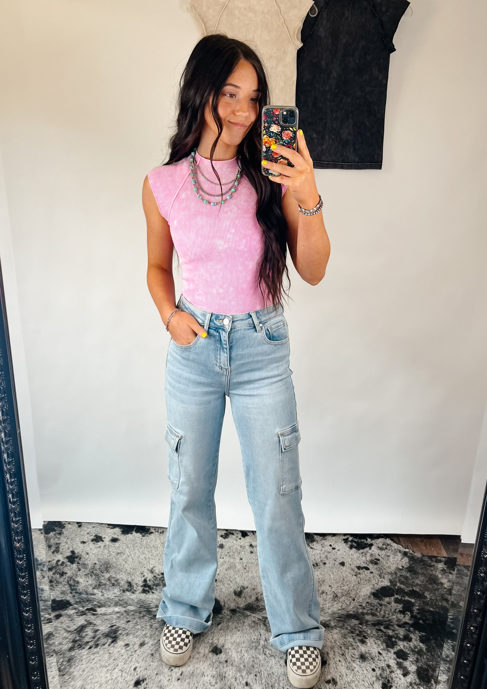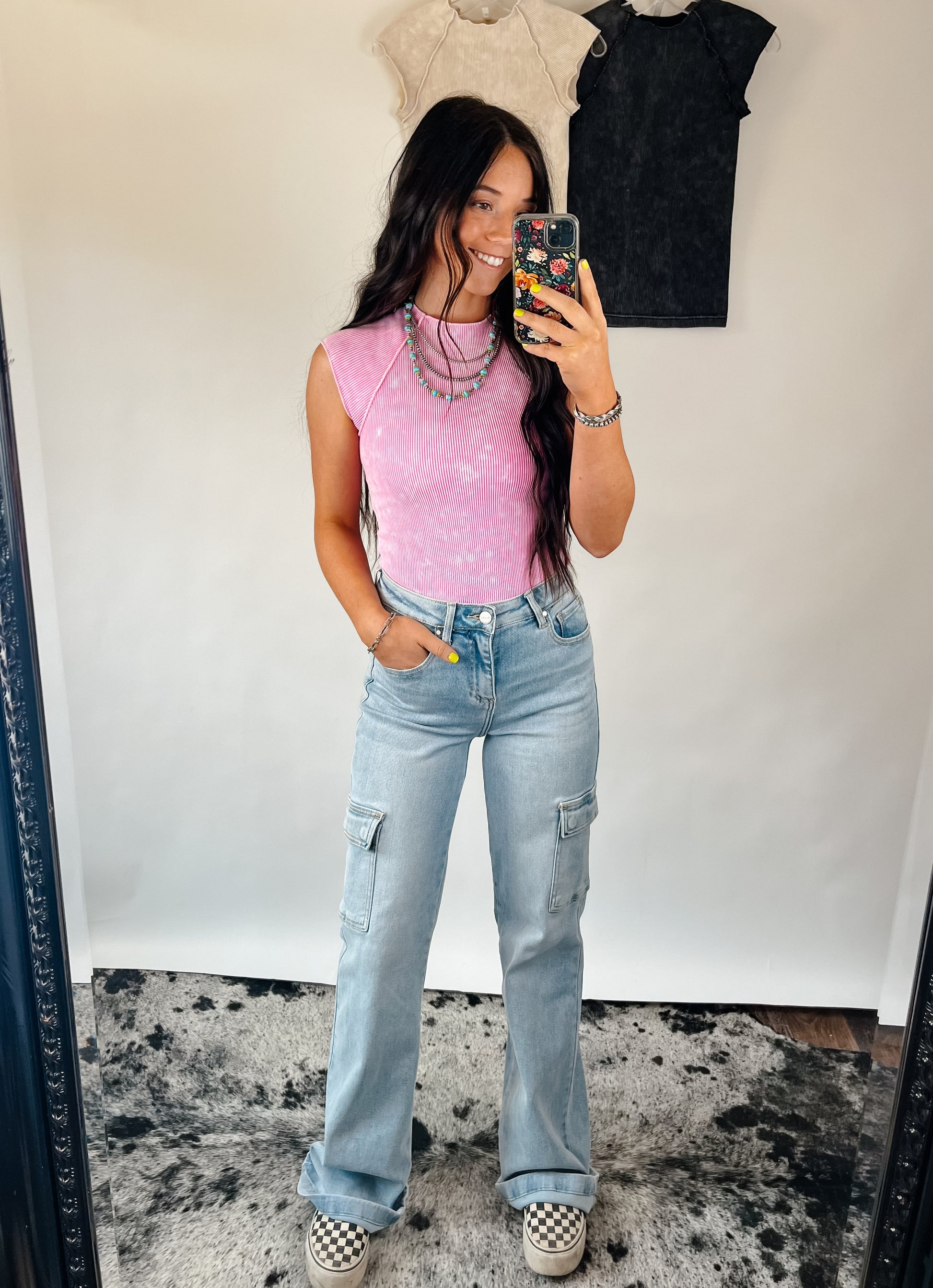 Jaleigh is 5’4 with a 25" waist wearing a size S/M.