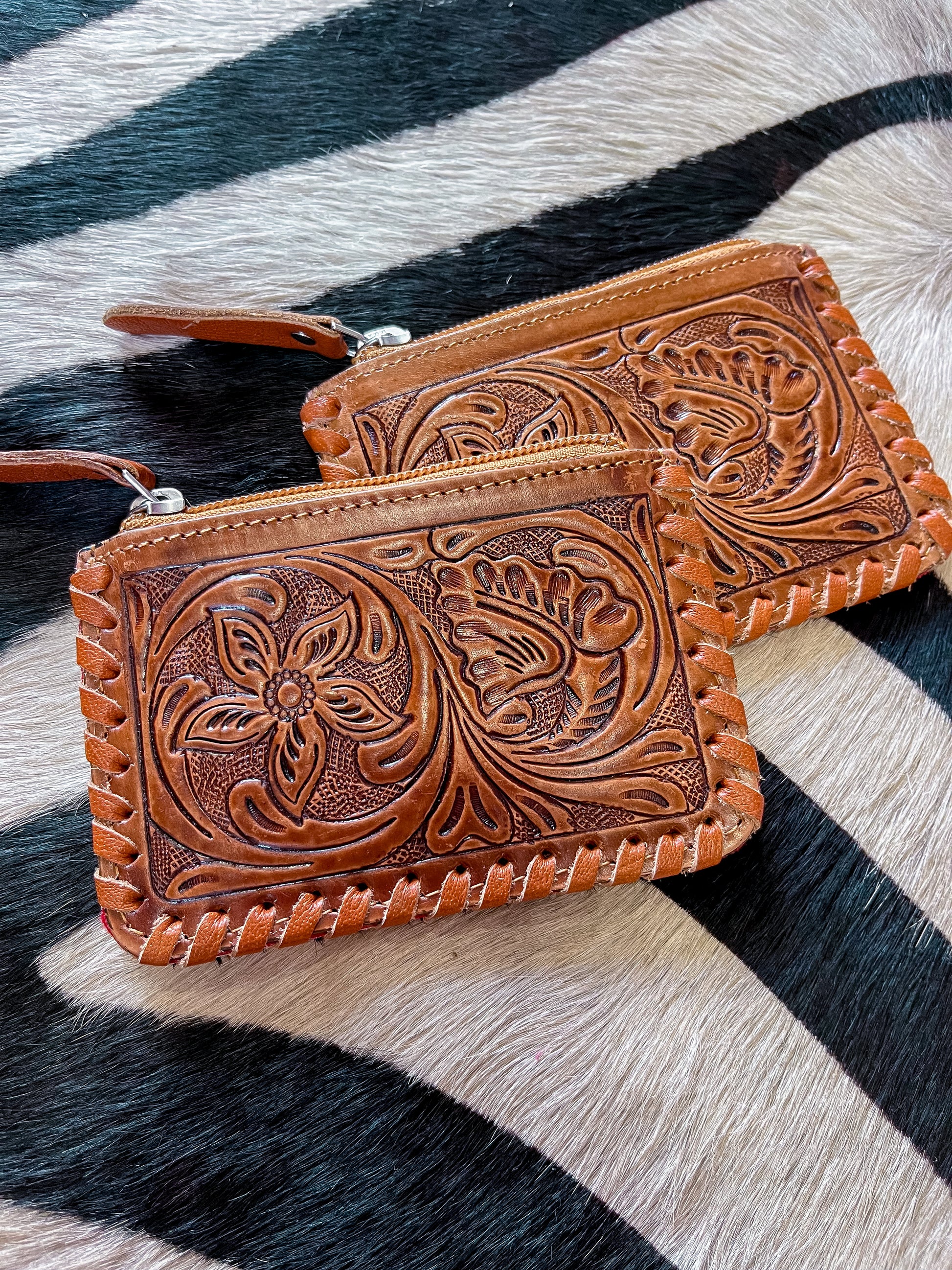 The Tooled Cowhide Zipper Wallets