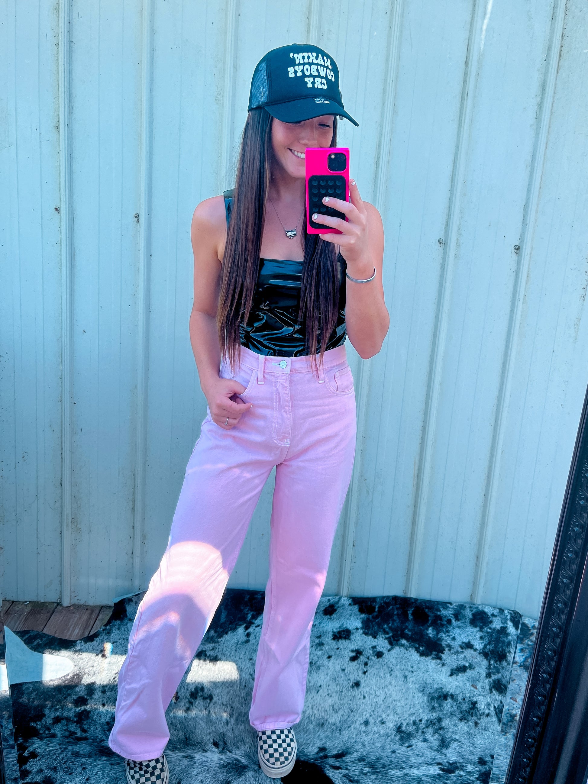 Jaleigh is 5’3 with a 24.5” waist wearing a size XS, but can also wear the size small for a slightly looser fit.