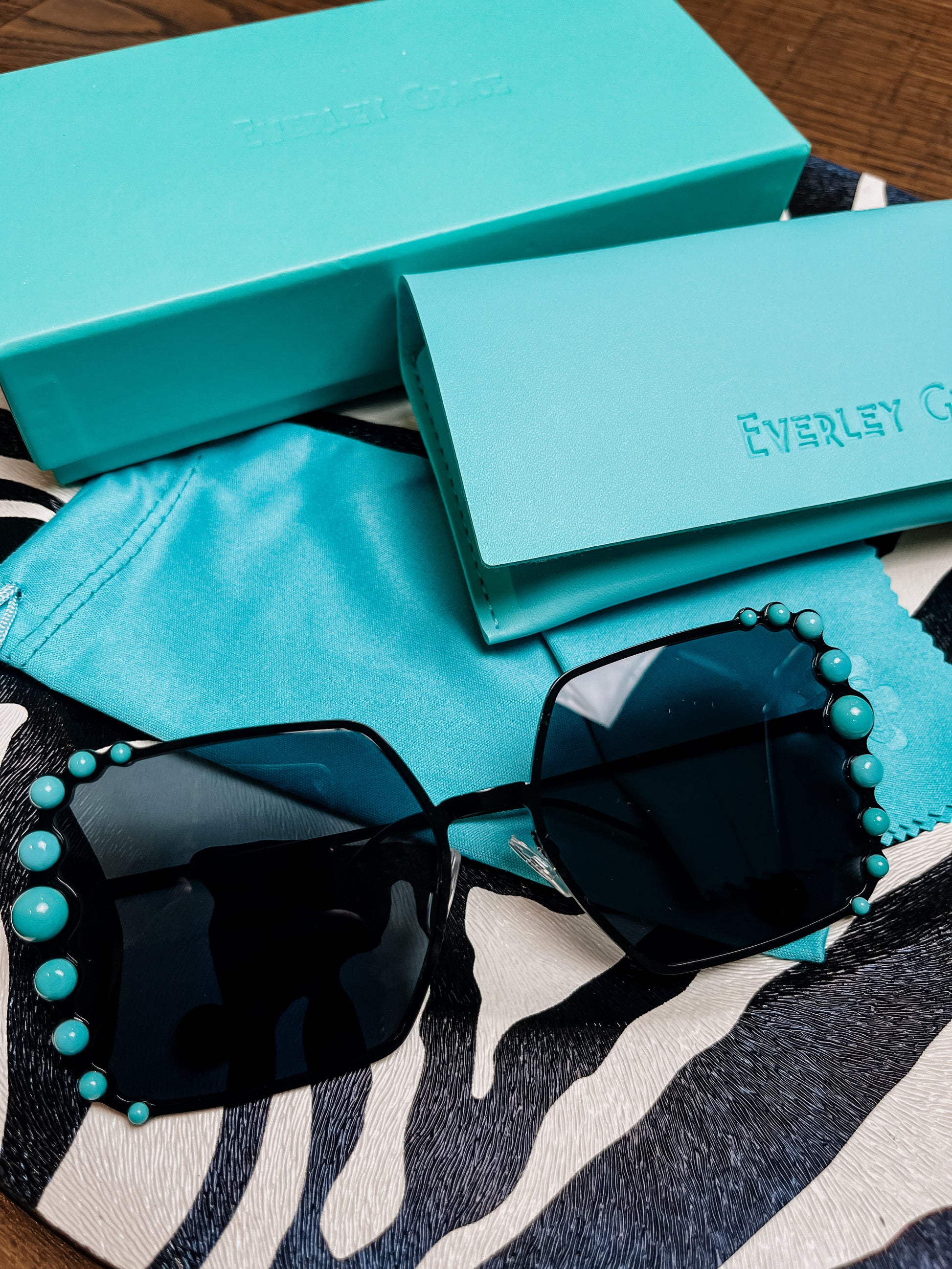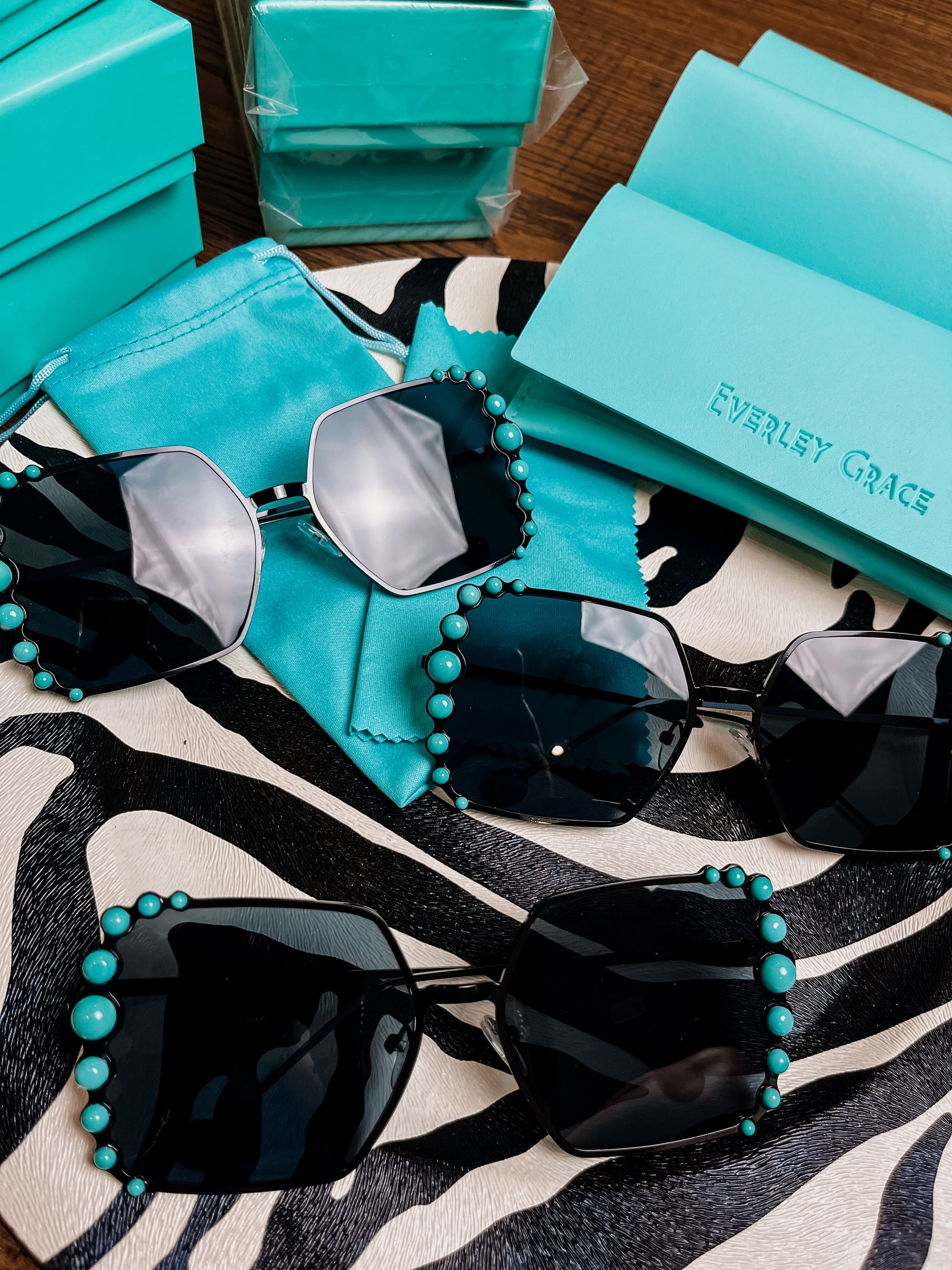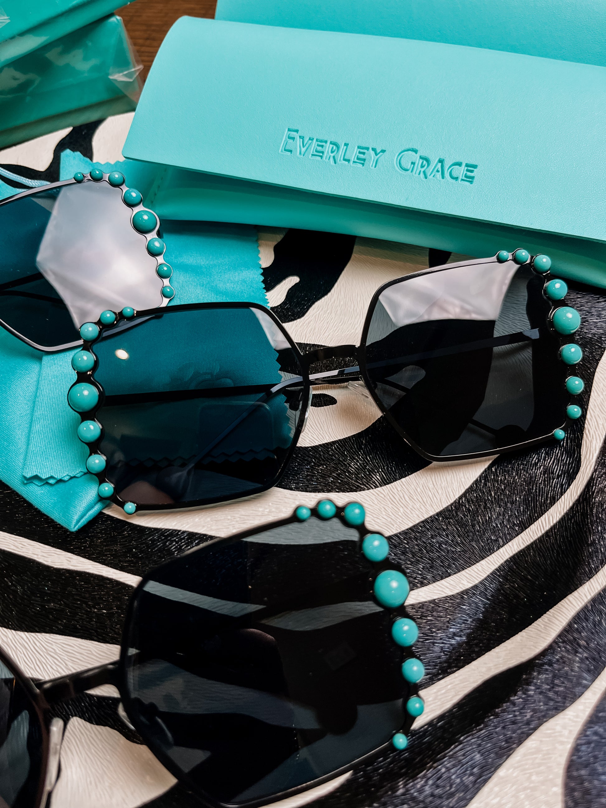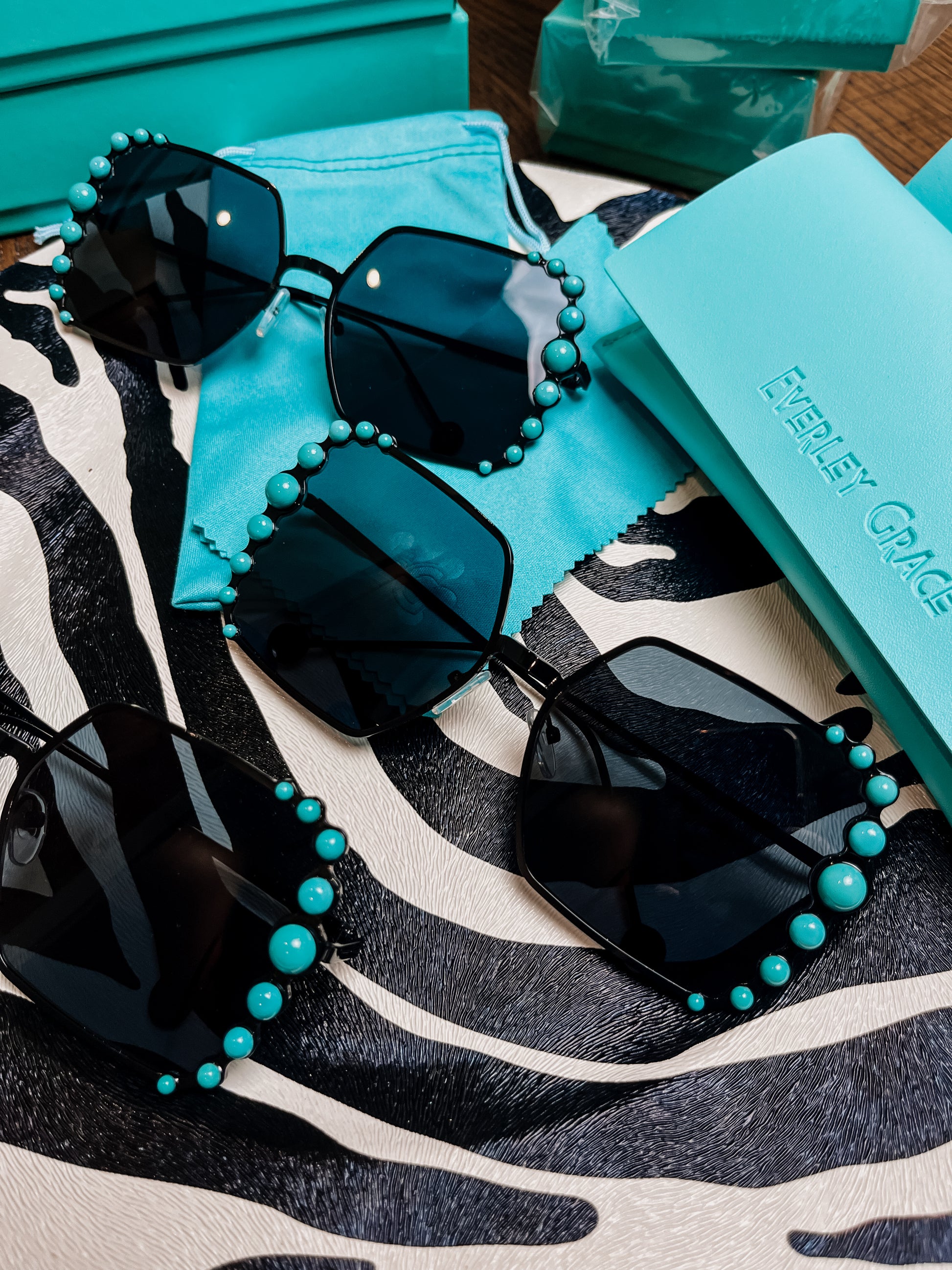 The cutest western sunnies everrrr. Each pair comes with a microfiber cleaning cloth, soft carry pouch, & a protective glasses case.
