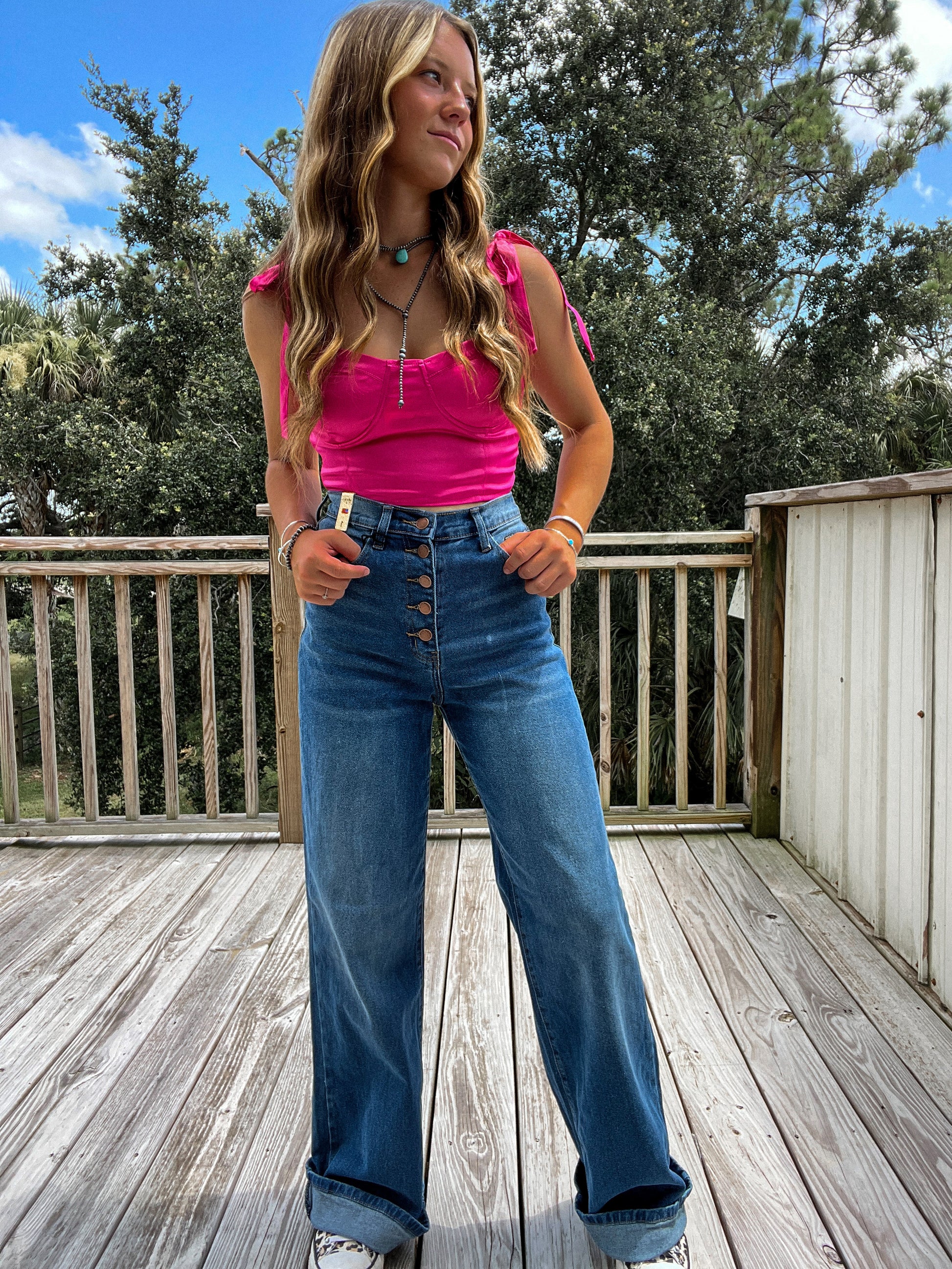 Jaleigh is 5’3 with a 25" waist wearing a size 1